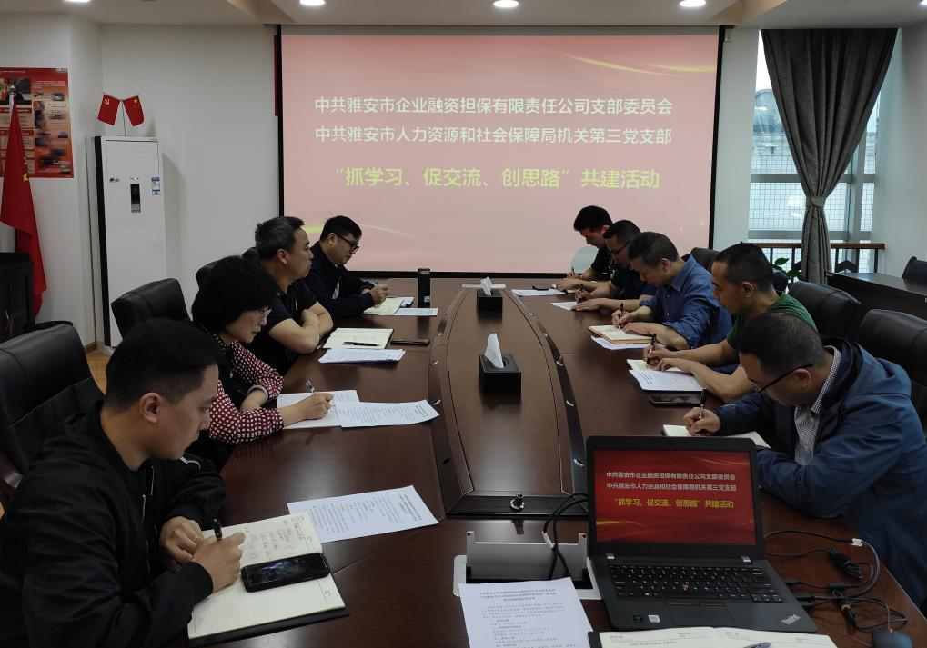 為提升黨建工作水平、促進(jìn)黨建工作融入中心工作,4月26日,市擔(dān)保公司黨支部與市人社局機(jī)關(guān)第三黨支部開展共建活動(dòng)。